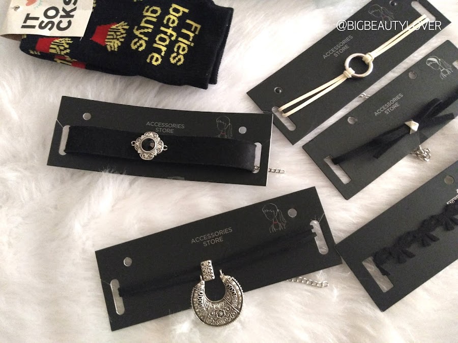 Estas gomitas de pelo me encantan porque no tienen la unión de metal que es la que te termina enganchando un montón de pelo. Las cadenitas me parecieron re lindas y las compré en 2x1, también las pulseritas.