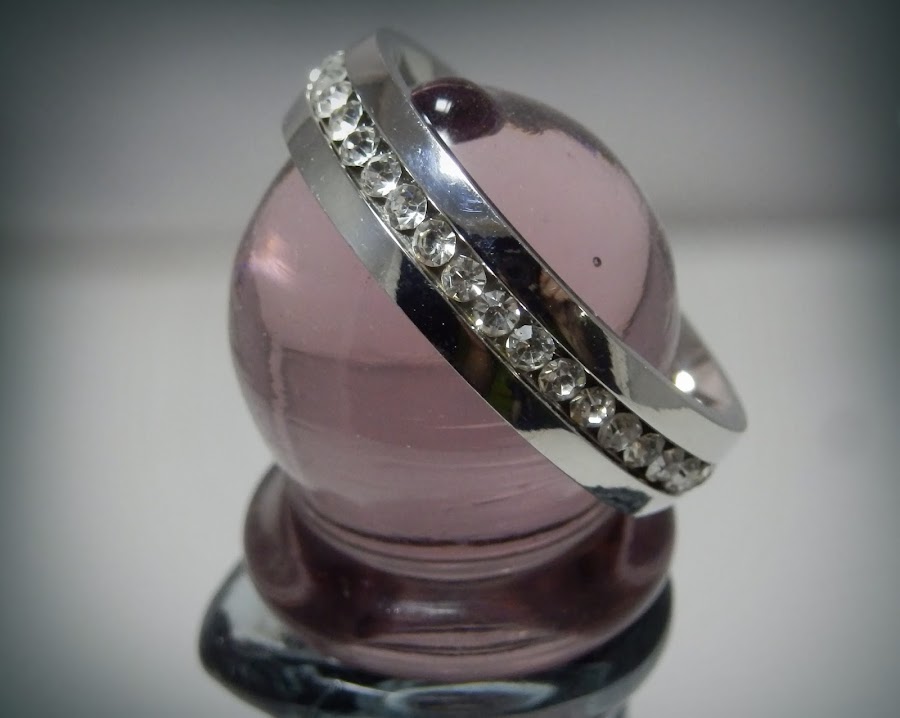 Y ya por último lo que se enseño es este anillo tipo alianza con diamantes simulados alrededor de toda la circunferencia del anillo.