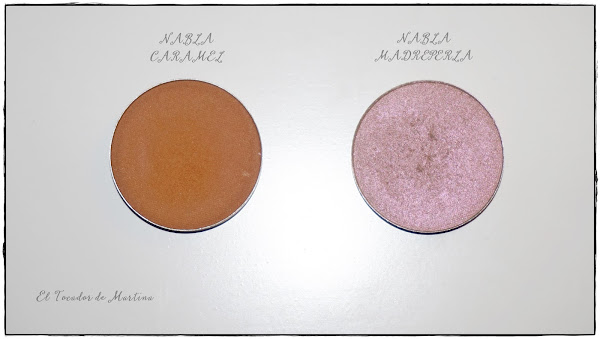 Pasamos ya a las sombras, me inicié con la marca Nabla, y ¡craso error amigas!, porque me han encantado y ya tengo algunas más en camino. Para empezar pedí dos en godet, los tonos "Caramel" y Madreperla.
