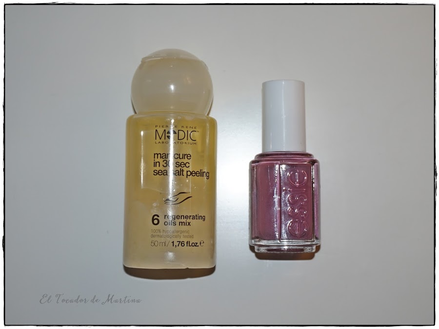 Ya para ir finalizando, un par de productos de manos y uñas, que pedí porque llevaba tiempo detrás de ellos, por una parte el exfoliante para manos y uña de Pierre René, a base de aceites y sal, y por otra un esmalte de Essie, concretamente el tono Hopping Island: