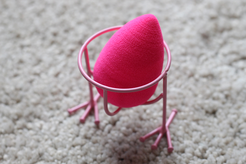 Empezamos con el reposa Beauty Blender, la famosa esponja para aplicarse el maquillaje que al mojarla ensancha y al secarse vuelve a su tamaño original. Ya su propia caja, cuando compré la esponja, venía para dejarla apoyada ya que hay que dejarla que se seque y al tener forma de gota, en ese tiempo necesitamos que no se deforme, así que fue ver este sistema tan gracioso con las patitas de pollito y parecerme súper práctico, ¡y así es! Ahora mi Beauty Blender siempre descansa ahí y es genial para tenerla en el tocador y cogerla y dejarla, porque está siempre a mano lista para usar.