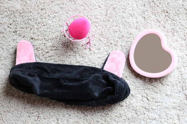 Las cosas en cuestión son: una cinta para el pelo con orejitas de gato, un reposa Beauty Blender con patitas de pollito y una luz led con espejo y forma de corazón para hacerse los selfies.