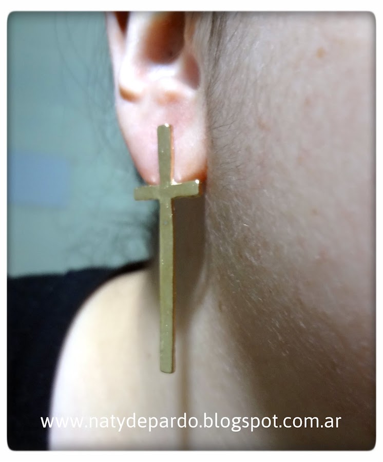 Estos aritos también los queria hace mucho, son un par de aros dorados en forma de cruz. Como ven son bastante largos. Estos salieron 0.99 dlls y les dejo el link acá.