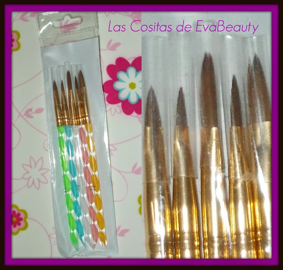 (Set 5 pinceles para uñas acrílicas de Buyincoins por Las Cositas de EvaBeauty)