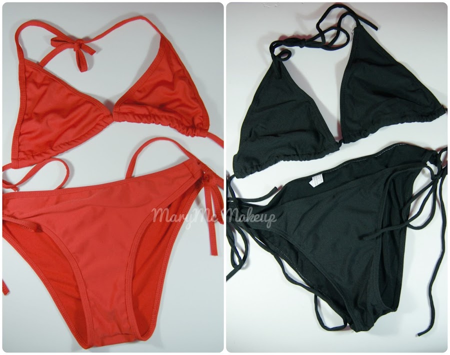 Voy a empezar por los bikinis que pedí. Empecé a ojear un poco los bikinis básicos y vi éstos con descuento. No es que sean de una calidad buenísima, pero tengo bikinis de los chinos que están como nuevos así que a ver que tal éstos. El rojo es un poco más pequeño a pesar de ser los dos de talla única. Os dejo los enlaces (click en los nombres) y precios a continuación: