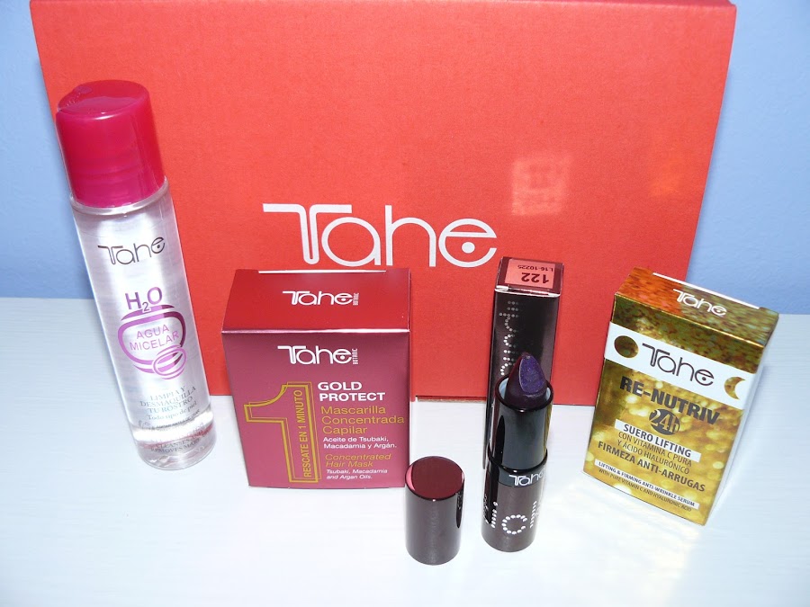 Tahe, nos regaló una cajita con una agua micelar, unas ampollitas flash, un pintalabios y una mascarilla de cuidado intensiva.