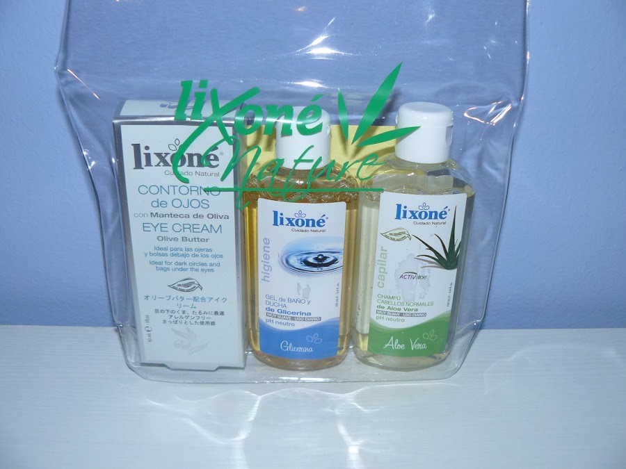 Lixoné, nos hizo llegar un neceser trasparente con un contorno de ojos, gel de baño y champú. Su tamaño es ideal para llevarlo de viaje, así que si pronto me hago alguna escapada, no dudaré en llevarlo conmigo.