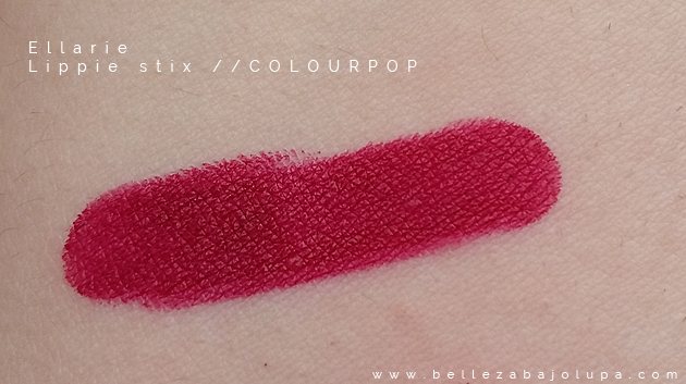 Los lippies son labiales en formato stick, retráctiles, que tienen su perfilador a juego. En ocasiones, como es el caso de Ellarie, su lápiz homónimo tiene un tono diferente para poder crear un labio degradado: ombre lips, que tan de moda estuvo este último año y que crea efectos preciosos. Como a mí me sobran labiales rojos oscuros, me parecía una tontunada hacerme con él también por ahora, pudiendo probar en su lugar otro producto de Colourpop, así que solamente me traje conmigo el Lippie.