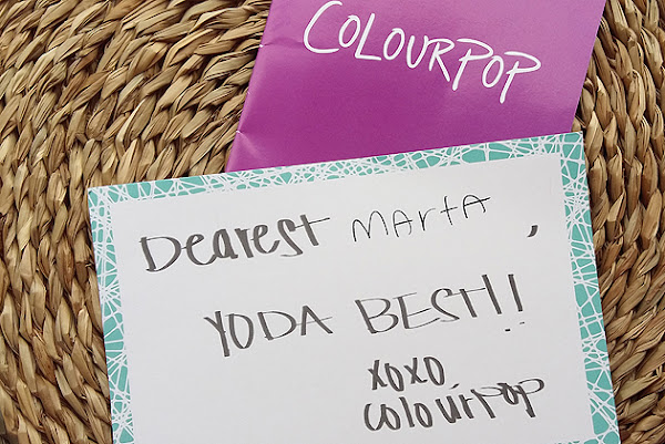 Llevo queriendo hacer esta entrada... ¡un suspiro! Porque casi acaba de llegarme a casa y ya estoy escribiendo y fotografiando como una loca: en realidad llevaba semanas, desde que hice el pedido, queriendo enseñaros los productazos de Colourpop con los que me hice. Quiero probarlos con calma para haceros un post sobre alguno de ellos, que seguro que se vuelven favoritos del mes y del siglo, pero una primera impresión sí la tengo.Si os interesa saber cómo me hice con él, si Shipito es o no es una pesadilla, si debéis probar la textura tan famosa de las sombras de Colourpop, qué tonos me he comprado y cuánto cuesta esta historia... dadle clic a aquí abajito.Para las que no conozcáis Colourpop, se trata de una marca americana de cosmética low cost con un diseño increible y unos tonos apoteósicos. Lo que más destaca de la marca, aparte de los Ultra matte lipsticks, unos labiales líquidos mates que son para flipar, son sus sombras: se trata de una textura que casi nadie sabe explicar bien. Son entre crema y mousse, pero al final son una sombra seca más. Es decir, contienen la pigmentación de un paintpot o una sombra en crema común, pero con una textura fácilmente difuminable como la de una sombra en polvo. Los precios de estos productos rondan los 5$, unos 4€, con lo cual se le suele llamar cosmética lowcost, aunque su calidad sea tan apabullante que otra marca los vendería por diez veces más.