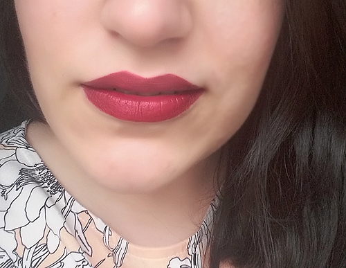 Un tonazo rojo sangre precioso. Es el que menos cubre de los tres, pero con dos pasadas está listo. Es algo más seco que el More better, no tengo ni idea si solo el mío o la fórmula es diferente. De nuevo creo que por esa cobertura media en labios más o menos oscuros que el mío lucirá de otro modo, pero creo que es el rojo que a todo el mundo le queda bien y en un formato comodísimo para que nos dure horas y horas. COLOURPOP ULTRA MATTE LIPS - BUMBLE