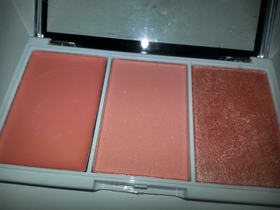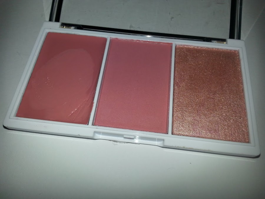 Es un trío que contiene colorete en crema, colorete en polvo e iluminador en polvo.