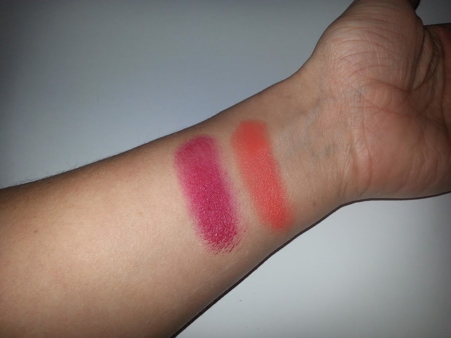 El segundo es un tono coral también, pero este tira más a rosa, y no es mate, tiene destellitos, pero no muchos.