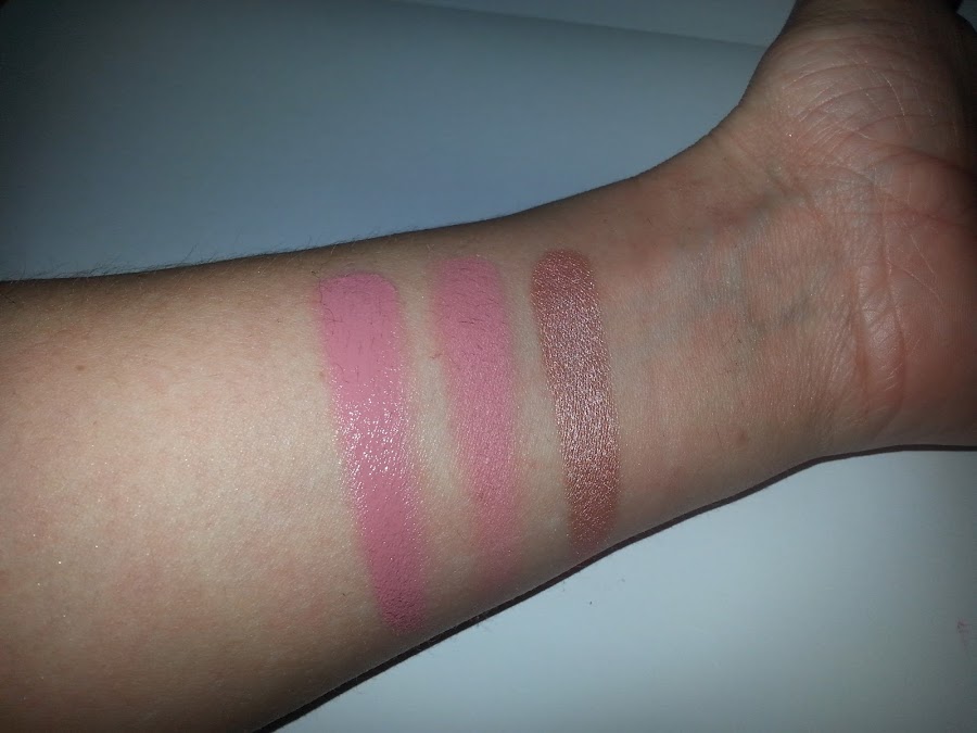 El tercero es el iluminador, tira mucho más a rosa que el otro iluminador, y también tiene mucho brillo, pero sin purpurina.