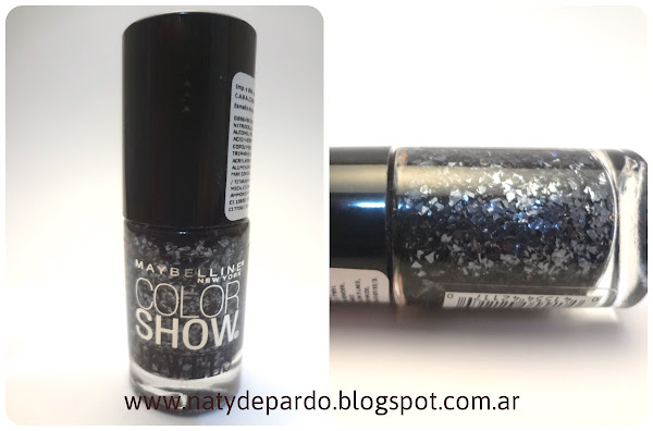 Este Colorshow de Maybelline fue mi última adquisición de las varias líneas que entraron (street art, veils,jewels). Compre los que mas me gustaron de cada una , y de la línea Jewels compré 2, el que es de varios colores y este todo negro. Al principio no me llamó mucho la atención tener un glitter grueso todo negro, pero después de verlo en varios swatches me convencí jeje