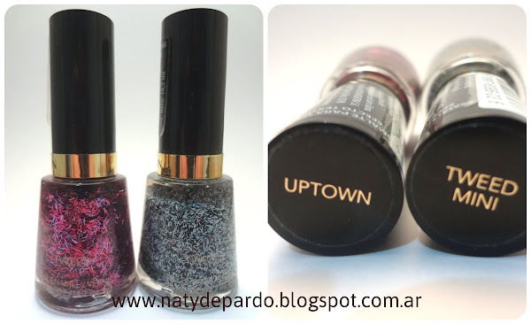 Estos 4 Revlon son los últimos que compre en oferta en 2x1, creo que unos los compre en farmacity y otros en pigmento. A mi me gustan bastante los esmaltes de Revlon de este envase, menos los perfumados ya que en mi experiencia son super traslúcidos. Mi línea favorita es la Top Speed y tengo varios . Por eso quise probar la línea Leather cuir que se supone que deja un acabado como con aspecto a cuero. Yo no se si es tanto así, pero me gustaron igual. Pero mis favoritos fueron los Tweed ¿ Quien no ama nos los glitters? Yo si! y mucho jeje ya es obsesivo lo mio! Ambos son hermosos, por ahí tengo el dorado cobrizo y el verde :)