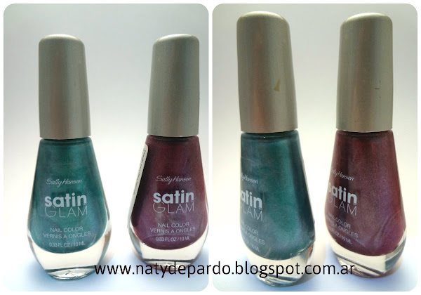 Empecemos por los Satin Glam de Sally Hansen. Estos los compre en farmacity en una promo 2x1, la verdad cuando salieron no me mataba pagar el precio completo . Pero después vi el celeste en un video de Alex Polvarini de Stampintadas (link acá) donde lo swatcheo y me encantó . Así que estas 2 bellezas se vinieron conmigo :)