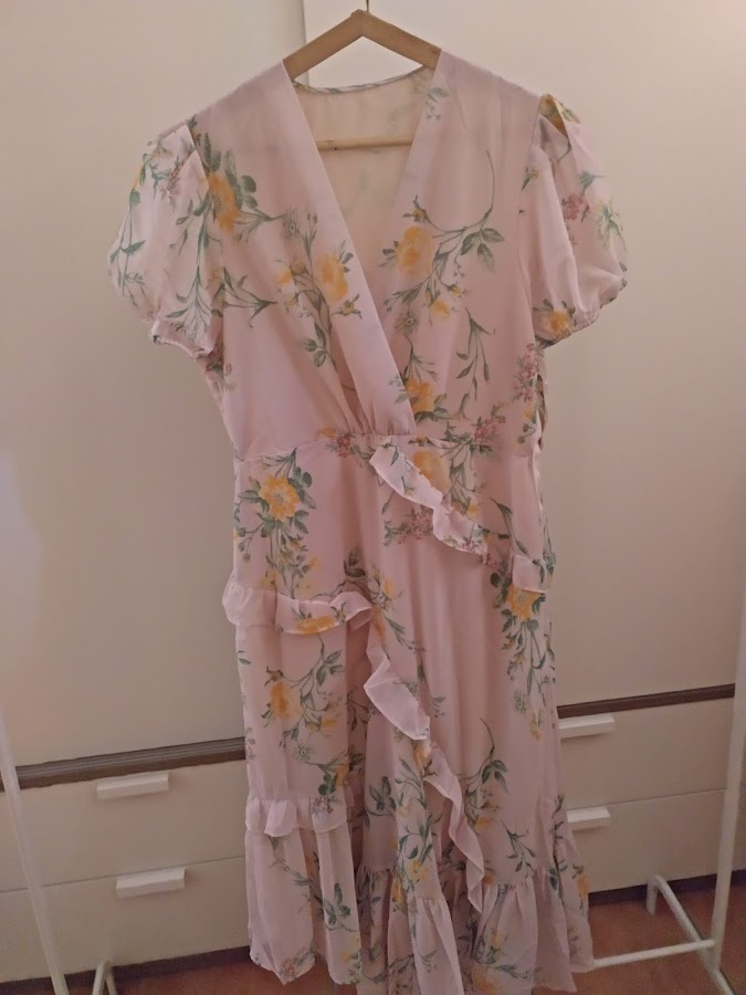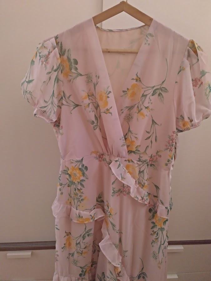 Es un vestido con aire romántico y bohemio, su estampado y color en rosa nudé lo hace delicado y con estilo romántico, perfeccto para ir perfecta en verano. Es la misma prenda que venden en Zara, pero lo encontré en Shein a un precio mucho mejor. Si os gusta lo podeis encontrar AQUÍ.