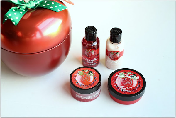 Y por último, mi madre me regaló esta manzana de The Body Shop con cuatro minitallas de productos con olor a frutas del bosque. Huelen genial y siempre me gusta usar estos productos. Me pueden las cosas con aromas en la duchas, ¿a vosotro@s?
