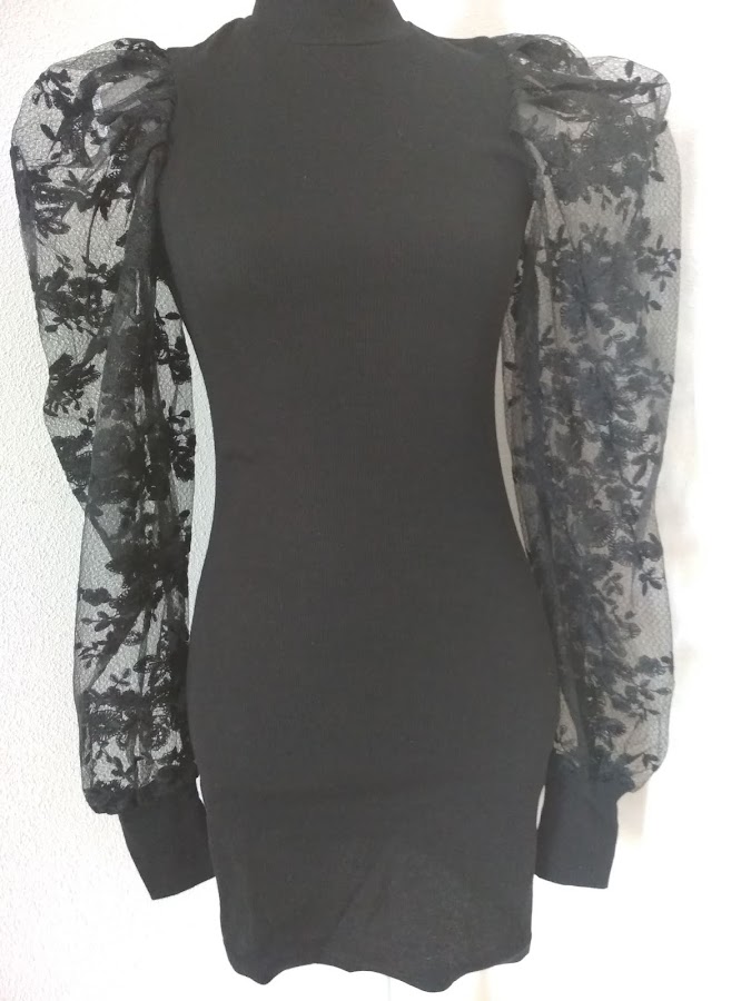 Por último este vestido ajustado de punto en negro con las mangas abullonadas de encaje. No está mal, la talla es la S y me va genial pero la calidad del encaje... picaba bastante cuando me lo probé.