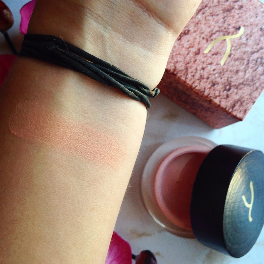 Es un coral con destellos dorados que una vez aplicado da una luz increíble al rostro sin falta de utilizar un iluminador. Además se difumina que da gusto.