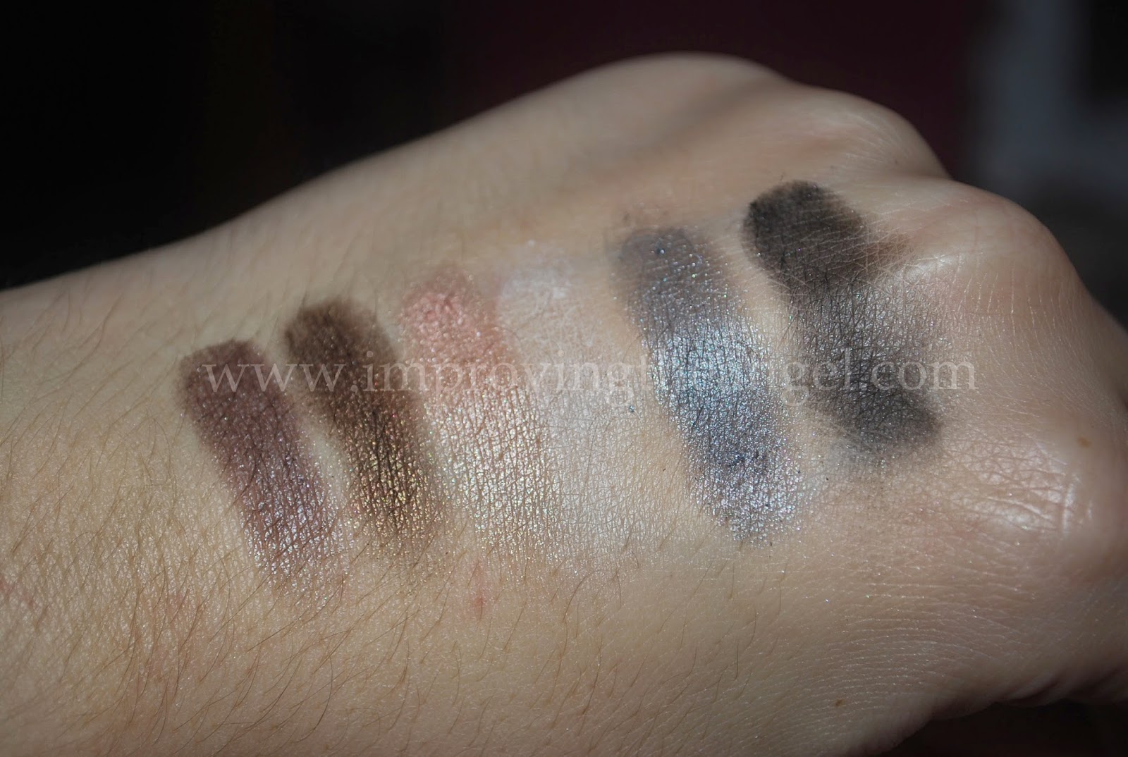Al igual que la anterior, las sombras pigmentan muy bien y no son nada polvoriendas, excepto la blanca que pigmenta poco y suelta algo de polvillo.