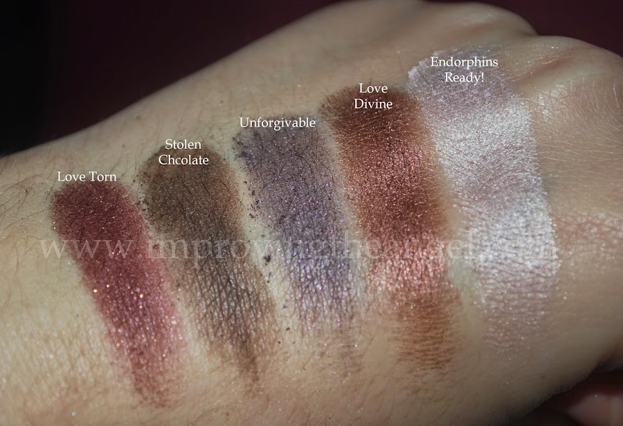 Estas son mis sombras favoritas, sobretodo la Chocolate Love que es la que mas uso. Aunque se ve muy dorada una vez aplicada en el párpado no llama tanto la atención.