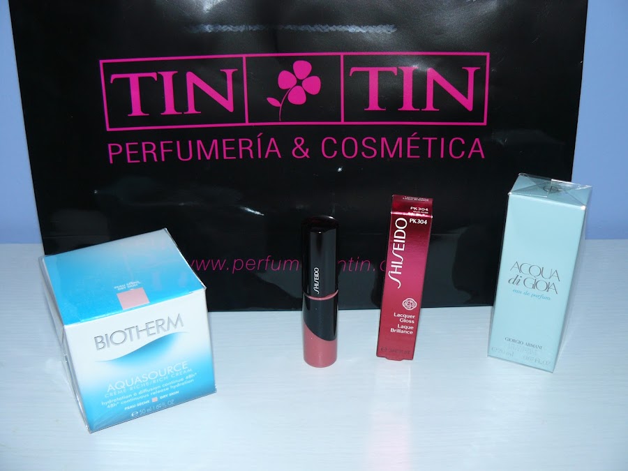 Perfumerias tin tin (las podréis encontrar en tienda física en palma de Mallorca), se portó de lujo con todas las bloggers, semanas antes del evento, nos pasaron vía email un cuestionario con diversas preguntas, según lo que les comentamos y el día del evento, nos sorprendieron con un lote que contenía, una crema facial de biotherm, un pintalabios de Shiseido y el perfume de Acqua di goia.