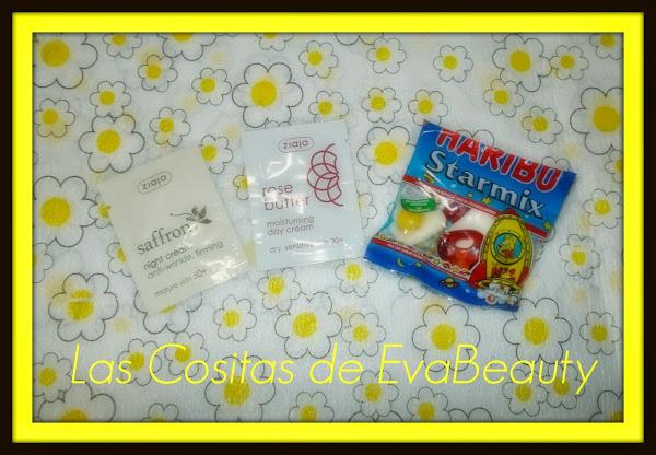 Me enviaron unas gominolas, y 2 muestras de Ziaja, la crema facial de rosa mosqueta y la de azafrán.