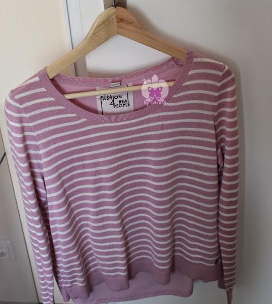 Este jersey lo compré en Alemania en Takko Fashion y su precio fue de 19,90???, me encanta tanto el color como el calado a rayas que tiene, es muy alegre y favorecedor.