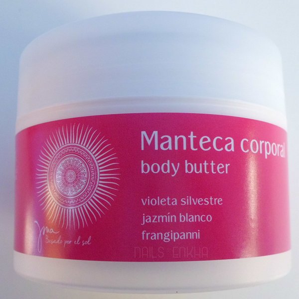 Manteca corporal con violeta silvestre, jazmín blanco y frangipanni. La usaré en verano ya que ahora me da más pereza y prefiero las de aclarar bajo la ducha.