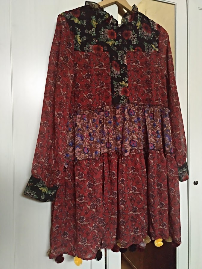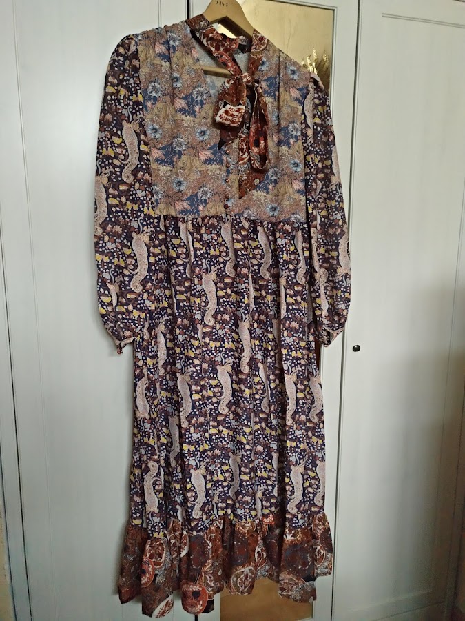 Que ganas tenia de enseñaros este precioso vestido de estilo folk, una tendencia que esta super de moda, me ha encantado su gran calidad. Lo que más destaco de este vestido es su estilo, muy sesentero, con un lazo en el cuello que le da un aspecto muy chic. En la parte frontal tiene unos botones y lo mejor de este vestido es que intercala telas de diferentes estampados. Si os gusta lo podéis encontrar AQUÍ.