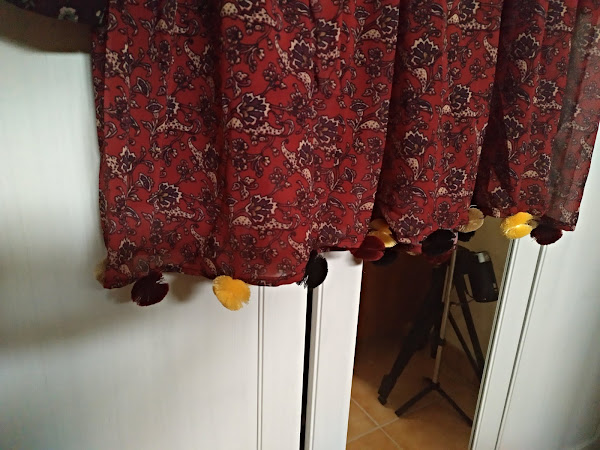 Las telas que han utilizado de flores le dan mucha fuerza y color al vestido, el detalle de los pompones en la zona baja del vestido lo hace muy especial.
