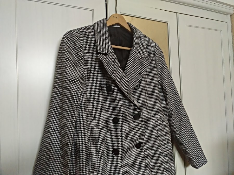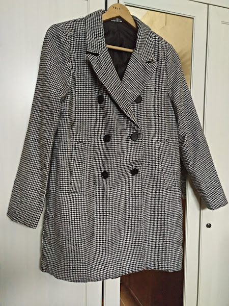 De abotonadura doble a cada lado y cruzado, en cuadros y estampado de pata de gallo en color negro y blanco. Si os gusta lo podéis encontrar AQUÍ.