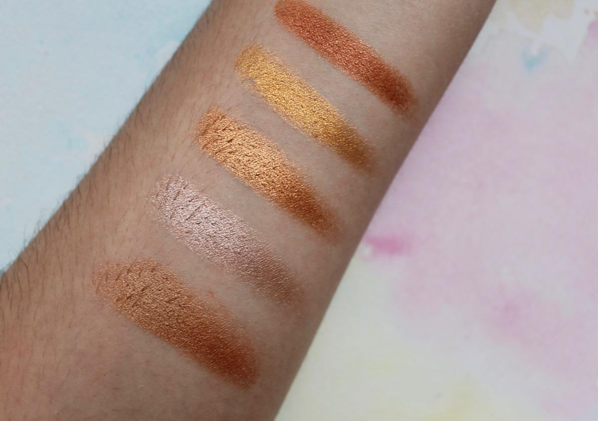 Estas sombras cada día nos sorprenden más, ojalá las tuviésemos más a mano en España, ¡ son ideales! y el precio es inmejorable. Os dejamos algunos swatches rápidos para que veáis su pigmentación y os hagáis una idea de sus maravillosas texturas.
