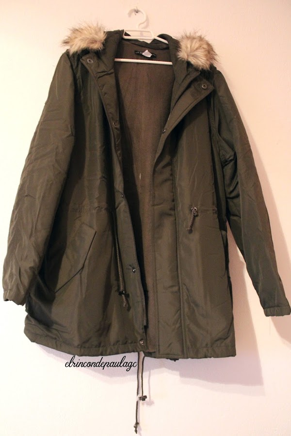 Esta parka verde militar con el pelito por el cuello me encanto! y otra cosa de las que también me gusto, fue que es abrigadita por dentro, como ven la tela de fuera es distinta a la de dentro y eso me encanta, porque así vas arreglada y a la vez abrigada, y no tienes que ponerte tanto abrigo.