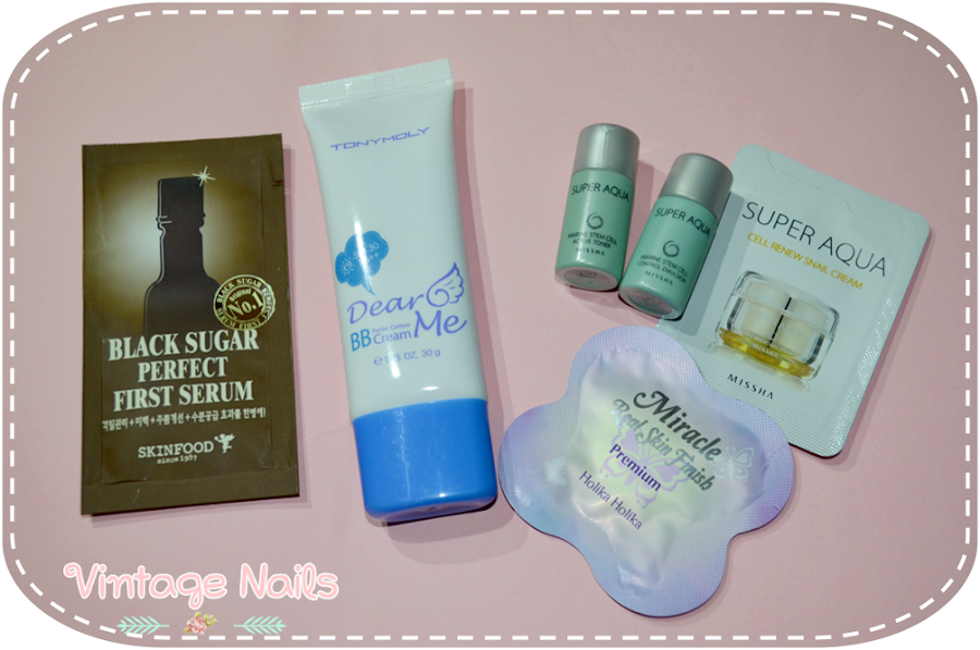Fue mi hermana la encargada en realizar el pedido a Cosmetic-Love, una tienda on-line coreana con gastos de envío gratis, y por lo que me ha contado todo venía muy bien empaquetado y sólo tardó 2 semanas en llegar. Además traía muestras de Holika Holika, SkinFood y Missha. Así que perfecto.