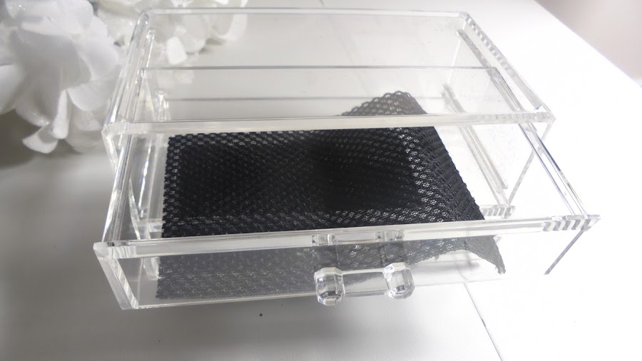 Lo primero que compre y casi me da un infarto de gusto cuando lo vi, fue esta cajonera de acrílico por tan solo una pequeña fracción de lo que cuesta en amazon y Ebay. Tiene buen tamaño y es de dos cajones, muy mono en serio me encanto. Me costó apenas 4,50$.