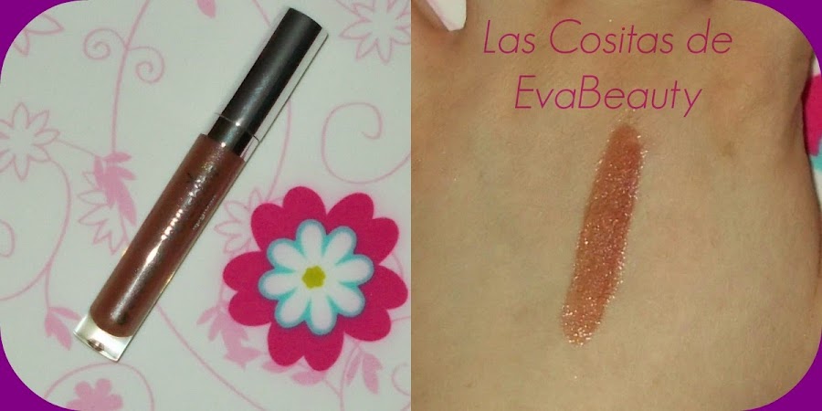 Éste gloss és marrón clarito, con micropurpurinas plateadas y doraditas que dan mucha luz a los labios y hacen que resalten. Queda muy bonito también.