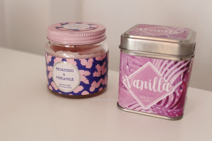 En el Primark he visto estas dos velas, que me han encantado tanto el olor como el packaging, para tenerlo en el escritorio o en la estanteria de "postureo" jajaj. La de piñas me costó 1 y la de vainilla 2.50.