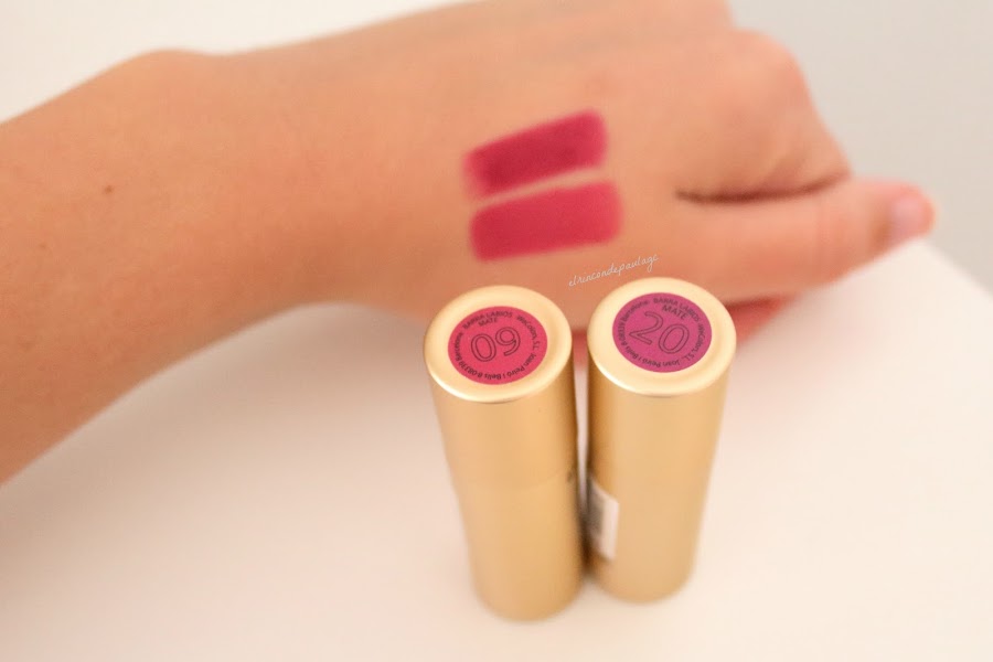 Empezamos con estos labiales de Mercadona. Uno es el too 09 y e otro el 20 como ven en la foto. En el swacht no se aprecia bien el color, pero he de deciros que el de abajo es el 09 y el de arriba el 20, aunque no se parezca al del packaging. Su precio es de 4.50 cada uno. Me parecen un poco caros, ya que hay otros que son por el estilo que los he pillado por 2 pero bueno, no hay nada malo de ellos, me gustan y los recomiendo!!