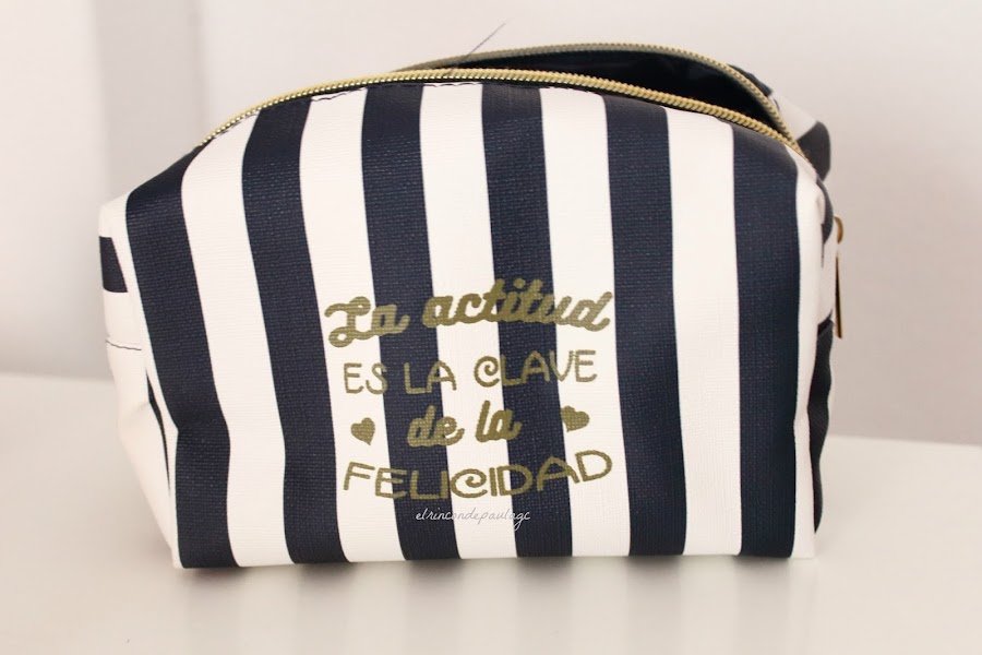 Y por último en Alehop, he visto este neceser con rayas (como no) y con el mensaje muy positivo! Su precio fue de 6 y andaba buscando uno, porque los que tenía ya están medios "pochos" y ví este y me gusto