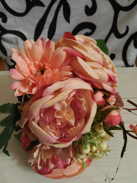 Ya sabéis que una de mis flores favoritas es la Peonía y si no lo sabíais la gerbera también, pues esta composición de ramo tiene las dos variedades y juntas se ven tan bonitas, lo he puesto encima de mi escritorio en un florero para que me alegre los días de trabajo y queda espectacular. Si os gusta lo podéis encontrar AQUÍ