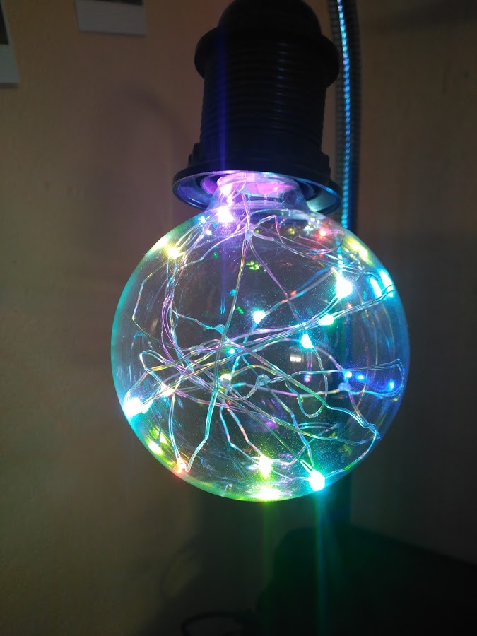 Y para terminar una cosa que nos ha fascinado en casa, se trata de esta bombilla que tiene luces de colores por dentro, que van cambiando en diferente frecuencia de movimiento y colores, con formato Led. Si os gusta la podéis encontrar AQUÍ