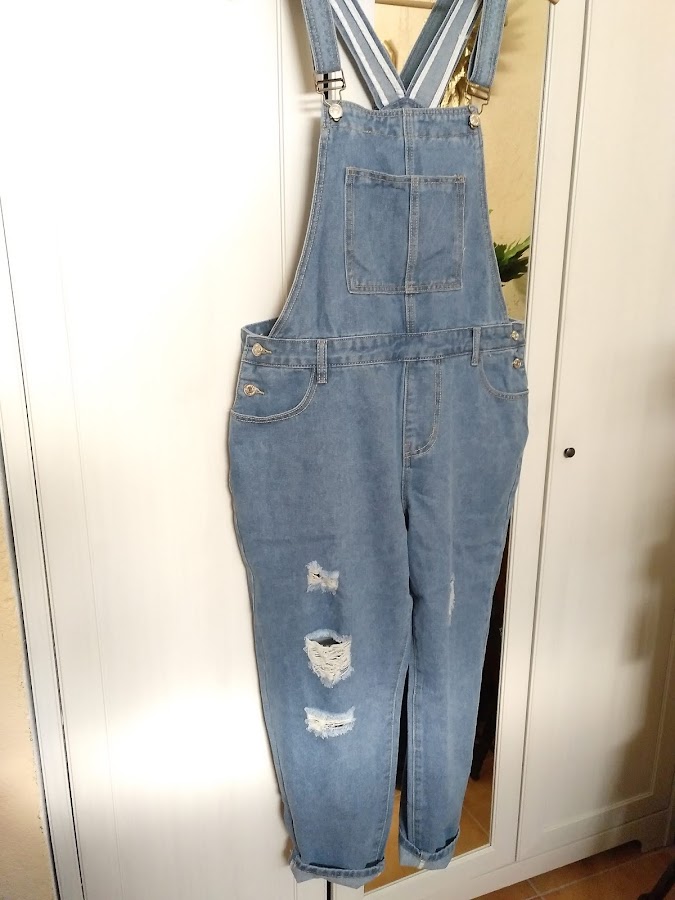 Buscaba desde hace tiempo un peto vaquero de este estilo, de tela vaquera gordito, que quedara ancho y cómodo y que fuera un peto que tuviera rotos, pero no muy exagerados y lo he encontrado,
