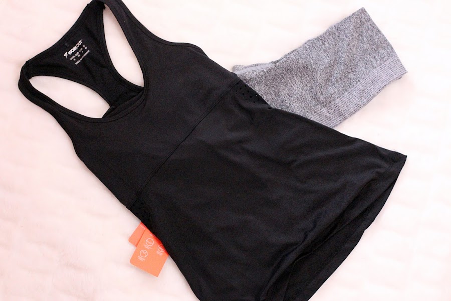 Casi siempre que voy, cae algo de esta zona, y esta vez cayeron dos, una camiseta con sujetador incorporado y unos leggins grises jaspeados.