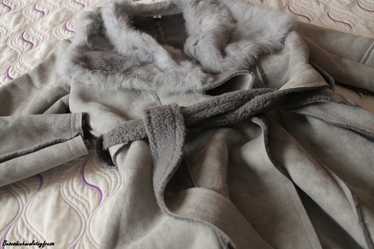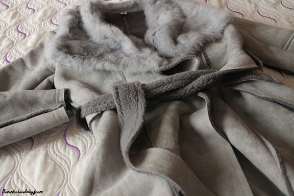 Abrigo de antelina y peluche en gris, la mar de amoroso y que os encanto por mis redes sociales. Pronto lo sacaré en el blog. Con cinturón para atar y marcar cintura, lo usaré un montón este invierno.