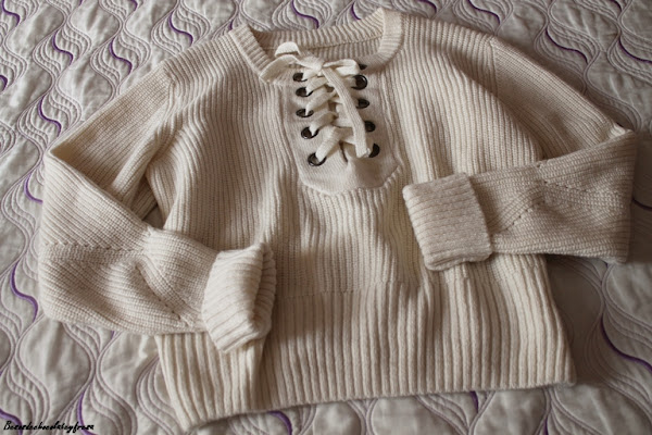 Primero os enseño sweater lace-up en blanco roto muy de moda esta temporada como ya lo estuvo en el verano en camisetas. Ideal para combinar con jeans, faldas o incluso superpuesto a un vestido.