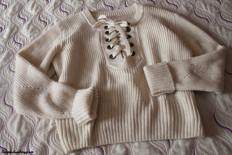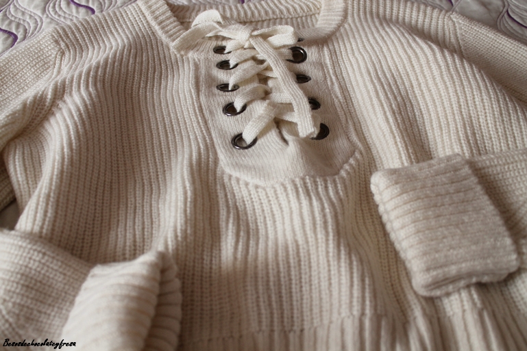 First I show you a lace-up sweater in white, very fashionable this season as it was in the summer in T-shirts. Ideal to combine with jeans, skirts or even superimposed on a dress.