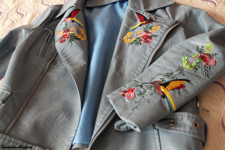 Y por último dos chaquetas, una bomber rosa muy vista en las calles y una biker en azul serenidad con detalles florales y animales en solapa y mangas. Ambos ya los visteis en el blog. (Aquí) y (aquí).