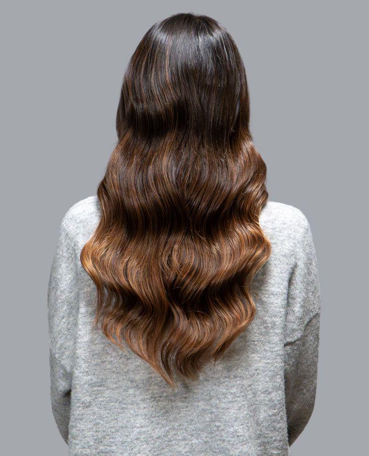 El primero es Hazelnut Mousse, un tono inspirado en el color Pantone 2025 y creado por Elena Rodríguez, directora de Eldans Colorists (Hospitalet de Llobregat – España) con los productos de coloración Under de Montibello. Un tono dorado con raíz marrón medio súper brillante y natural, cálido y cremoso. Un tono que queda muy bien a las melenas negras y marrones oscuras, que son las que mejor mantienen la profundidad que caracteriza a este color resaltando los rasgos faciales.